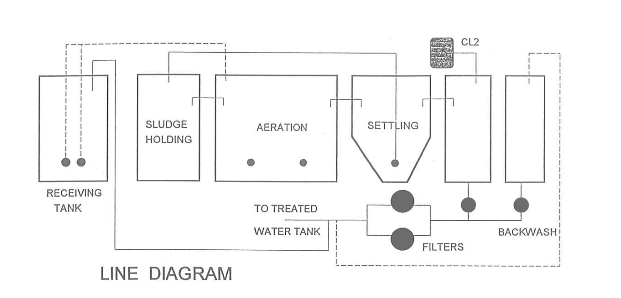 Leaving the bar screen, the wastewater flow is slowed down entering the grit tank, to allow sand, gravel and other heavy material that was small enough not to be caught by the bar screen to settle to the bottom. All the collected debris from the grit tank and bar screen is disposed of at a sanitary landfill.